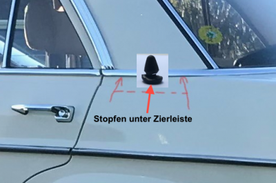 | - | + | *Durchgegammelte Gummistopfen unter der Zierleiste, siehe Bild: | |