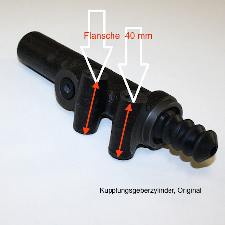 So sah der alte Geberzylinder aus, hier sieht man den 40mm starken Befestigungsflansch für die zwei langen Schrauben: