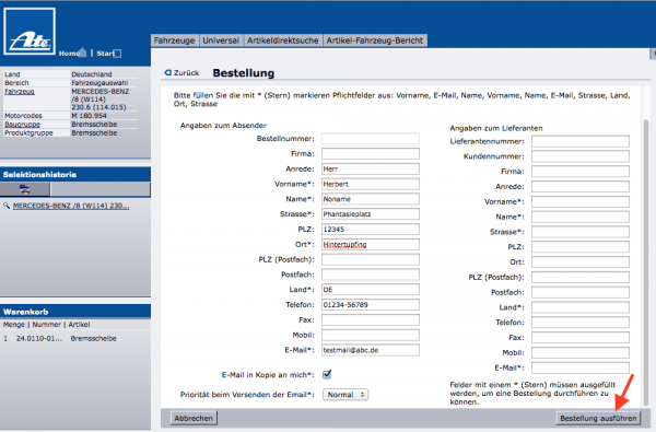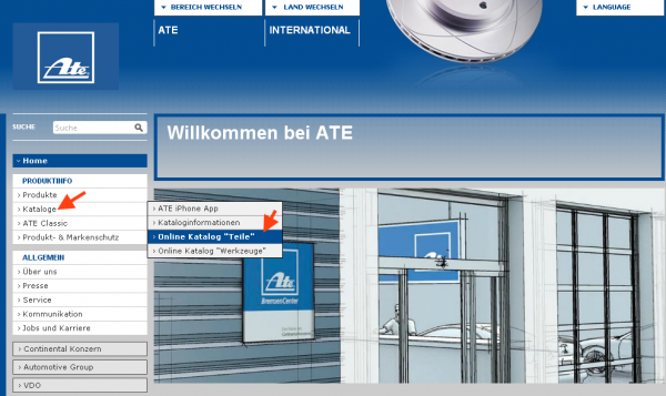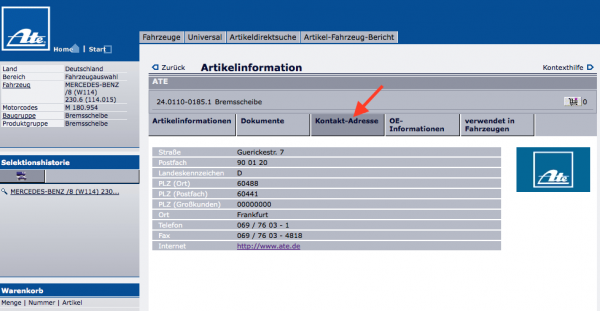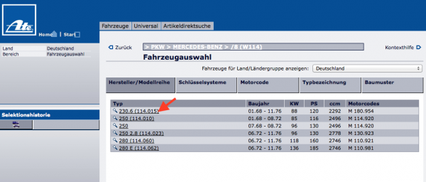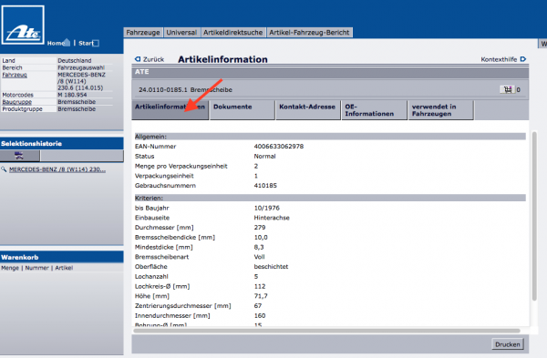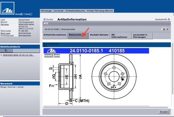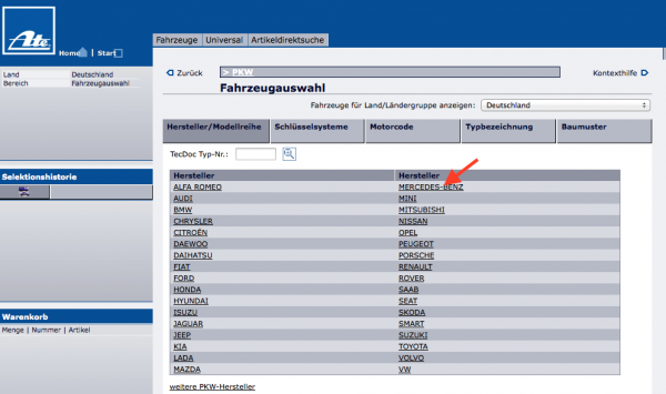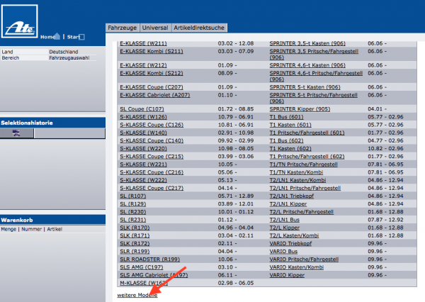 In den nachfolgenden Screenshots wird am Beispiel einer Bremsscheibe für die Hinterachse eines 230.6-ers  die Abfolge gezeigt wie man sich durch dieses Portal hangelt.
