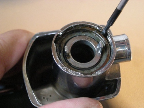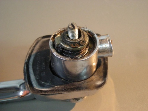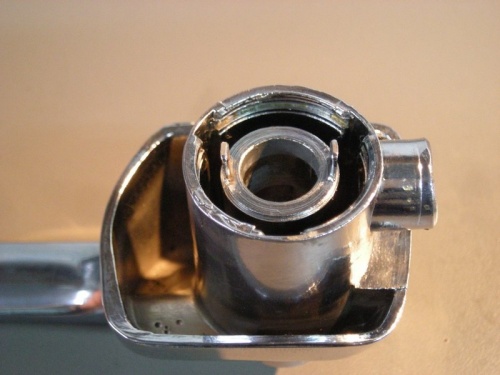 Auf dem Foto sieht man auch die ringförmige Gummidichtung (bei mir ist sie kaputt), die verhindert, dass Feuchtigkeit und Dreck in den Hohlraum wandern kann.