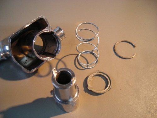 Wenn der Sprengring ab ist, kann nun der mit einer Ringfeder arretierte Halter abmontiert werden: