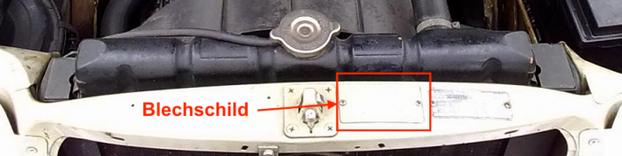 In den /8-ern ist bei allen Modellen unter der Motorhaube auf dem Querträger oberhalb des Kühlers seitlich vom Motorhauben-Verschluss ein kleines Blechschild montiert.