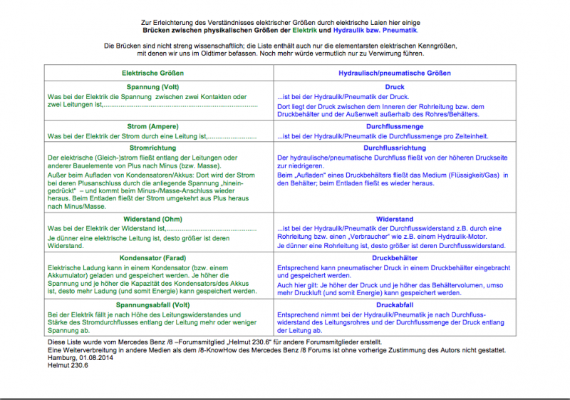 Deshalb hier der Versuch das Verständnis von Elektro-Laien für diese Materie mit Hilfe eines Brückenbaus zwischen Begriffen der Elektrotechnik und der Hydraulik/Pneumatik ein wenig zu unterstützen.